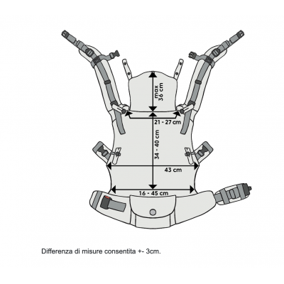 - Flexibility: two ways of babywearing (front carry from the birth and back carry from the fourth month of life)