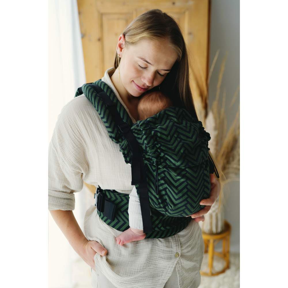 - Prime carriers have an additional, bottom belt fastener for non-sitting children - which allows to reduce the tension of the fabric on the child's back. It is easy and quick to attach to the hip belt, thanks to the snap and Velcro system.
