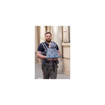 Buzzidil is the ergonomic carrier that grows steplessly with your baby. The back panel is made from sling fabric. You can use it for front and back carry. It is easy to use and to adjust.