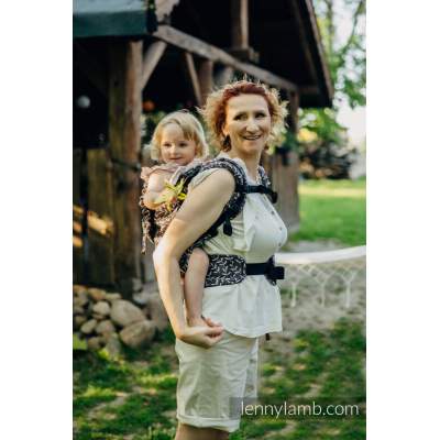 Functionality: two wearing positions - front & back. Adjustment of the panel and the shoulder straps ensure perfect fit and correct, ergonomic position of the child at a
