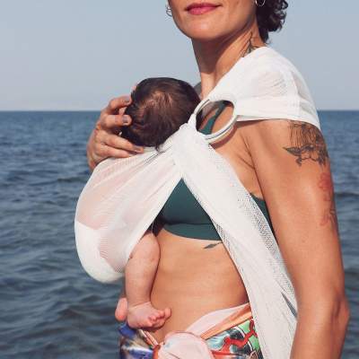 - Strong aluminum ring just as our regular ring sling. Simple but clever way to hold your baby especially in the water.