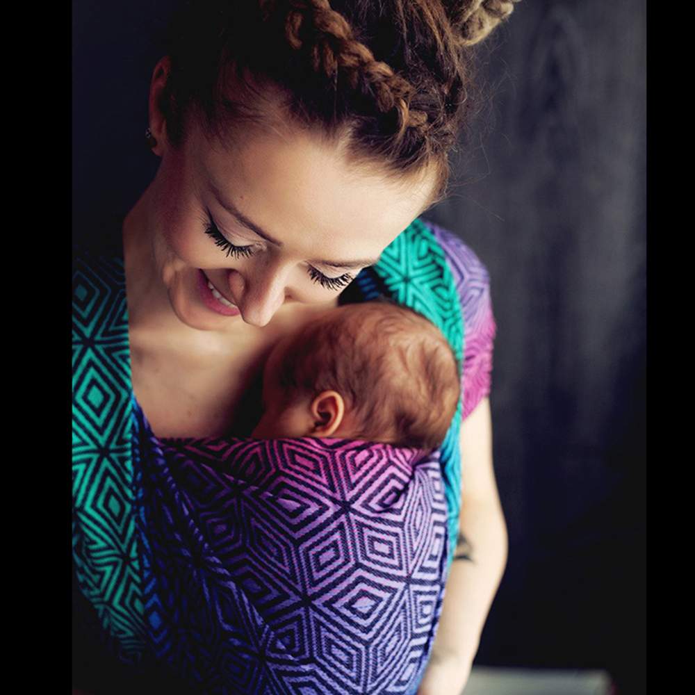 Woven baby wrap Little Frog Dark Aurora Cube